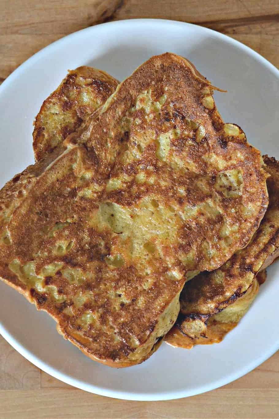 Then I cook in a non-stick pan w maybe a 12 tsp of ghee. 8 slices stale bread Use French Bread if you can Blend the eggs milk sugar and vanilla. Gluten-Free Protein Recipes Nut-Free Protein Recipes Protein Bread Recipes Whey Protein Recipes.